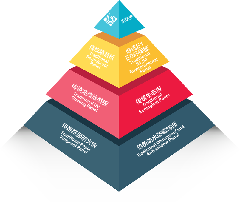 • “家倍安”使用高阻隔金屬鋁箔和高滲、超耐磨納米材料,經(jīng)過高溫高壓獨(dú)特的工藝方法處理,飾面木質(zhì)纖維結(jié)構(gòu)更加縝密,隔音、降噪,導(dǎo)熱系數(shù)低,防火等級(jí)高,達(dá)到國家防火材料防火標(biāo)準(zhǔn)A2級(jí)。